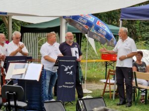 Unser Seemannssonntag war auch diesmal wieder gut besucht. Zur Musik unseres Shantychors „Die Regnitzmöven“ ließen sich die Gäste Gulaschsuppe, Fischbrötchen und natürlich unsere selbstgebackenen Kuchen schmecken. Mittendrin fand unser 1.Vorstand Martin Zeit, unseren treuen Kameraden Arno für 40 Jahre Mitgliedschaft zu ehren. Besonders gefreut haben wir uns auch über den Besuch des 1. Vorstands des Marinevereins Hof. Mirco und seine Frau hatten extra die lange Fahrt unternommen um einen Seemanns-Sonntag bei uns zu erleben. Unsere Freunde aus Hof sind immer sehr willkommen!